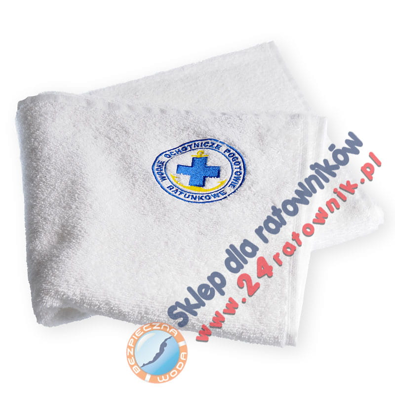 Duży krystalicznie biały ręcznik dla ratownika WOPR